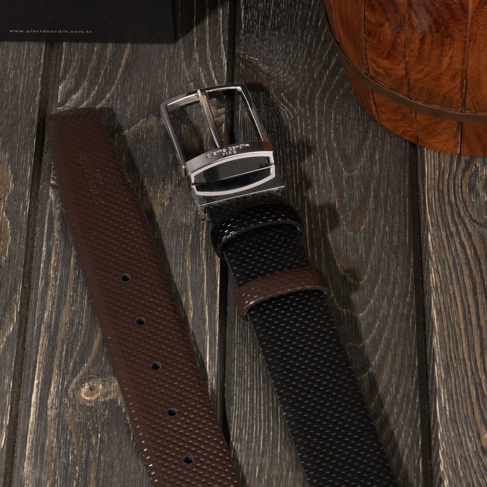 Gelince Haber VerPierre Carden deri kemer gerçek deriden üretilmiştir. Çift renktir ve çift taraflı kullanılır.