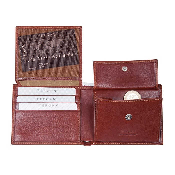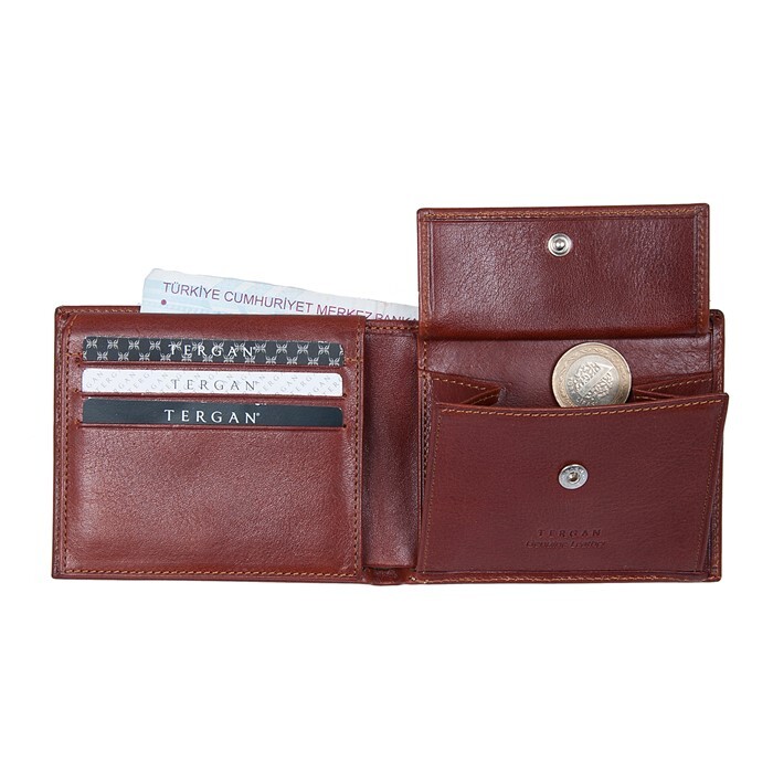 Tergan deri cüzdan gerçek deriden üretilmiştir. Tergan deri cüzdanın kapalı ölçüsü Yükseklik 8,5 cm Genişlik 11 cm Kalınlık 2 cm. Tergan deri cüzdanın altı adet kart bölmesi, iki adet para bölmesi vardır.