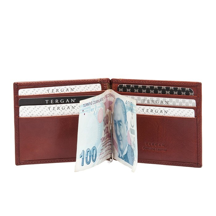 Tergan deri cüzdan gerçek deriden üretilmiştir. Tergan deri cüzdanın kapalı ölçüsü Yükseklik 8,5 cm Genişlik 10,5 cm Kalınlık 1 cm. Tergan deri cüzdanın altı adet kart bölmesi orta kısmında kelepçeli para koyma bölmesi vardır. Cüzdanın ön ve arka yüzünde saklama alanı vardır.