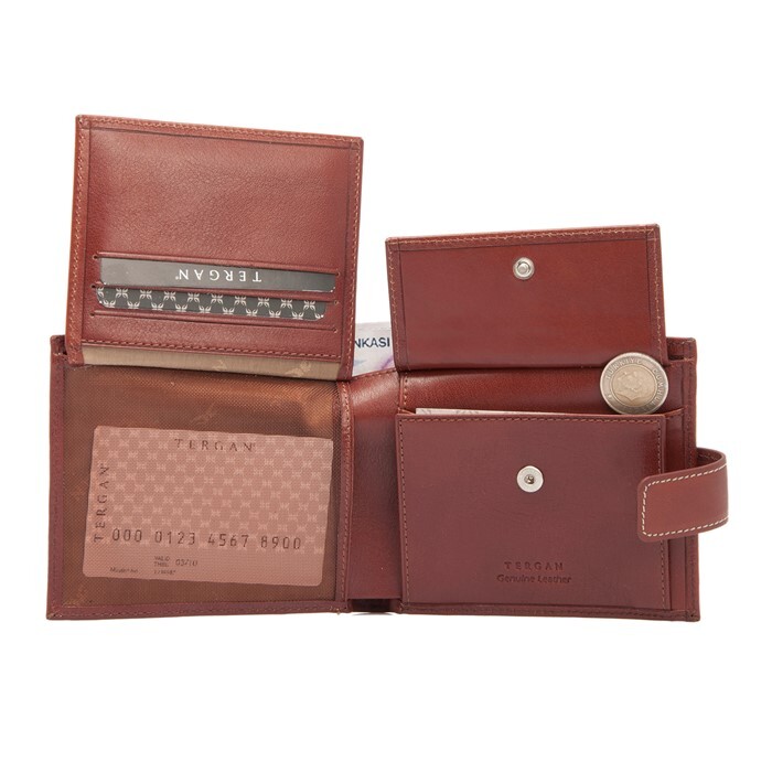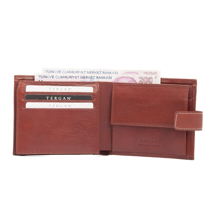 Tergan deri cüzdan gerçek deriden üretilmiştir. Tergan deri cüzdanın kapalı ölçüsü Yükseklik 10 cm Genişlik 11,5 cm Kalınlık 3 cm. Tergan deri cüzdanın altı adet kart bölmesi, iki adet para bölmesi ve kimlik bölmesi vardır. Para bölmelerinden birisi fermuarlıdır.