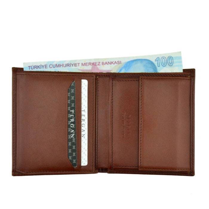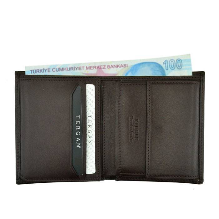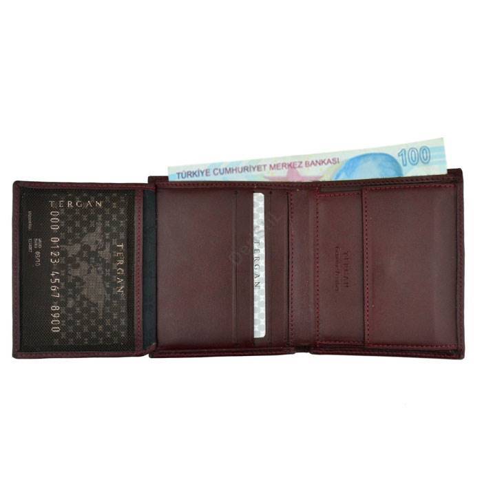 Tergan deri cüzdan gerçek deriden üretilmiştir. Tergan deri cüzdanın kapalı ölçüsü Yükseklik 10,6 cm Genişlik 9 cm Kalınlık 2,5 cm. Tergan deri cüzdanın beş adet kredi kart bölmesi, kimlik bölmesi ve bozuk para bölmesi vardır.