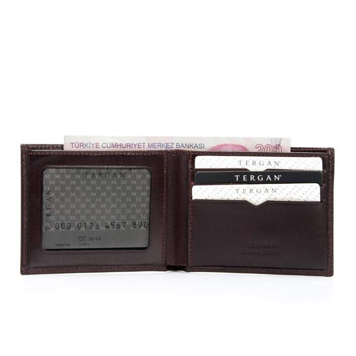 Gelince Haber VerTergan deri cüzdan gerçek deriden üretilmiştir. Tergan deri cüzdanın kapalı ölçüsü Yükseklik 8,3 cm Genişlik 11 cm Kalınlık 2 cm. Tergan deri cüzdanın üç adet kart bölmesi, kimlik bölmesi ve iki adet para bölmesi vardır.