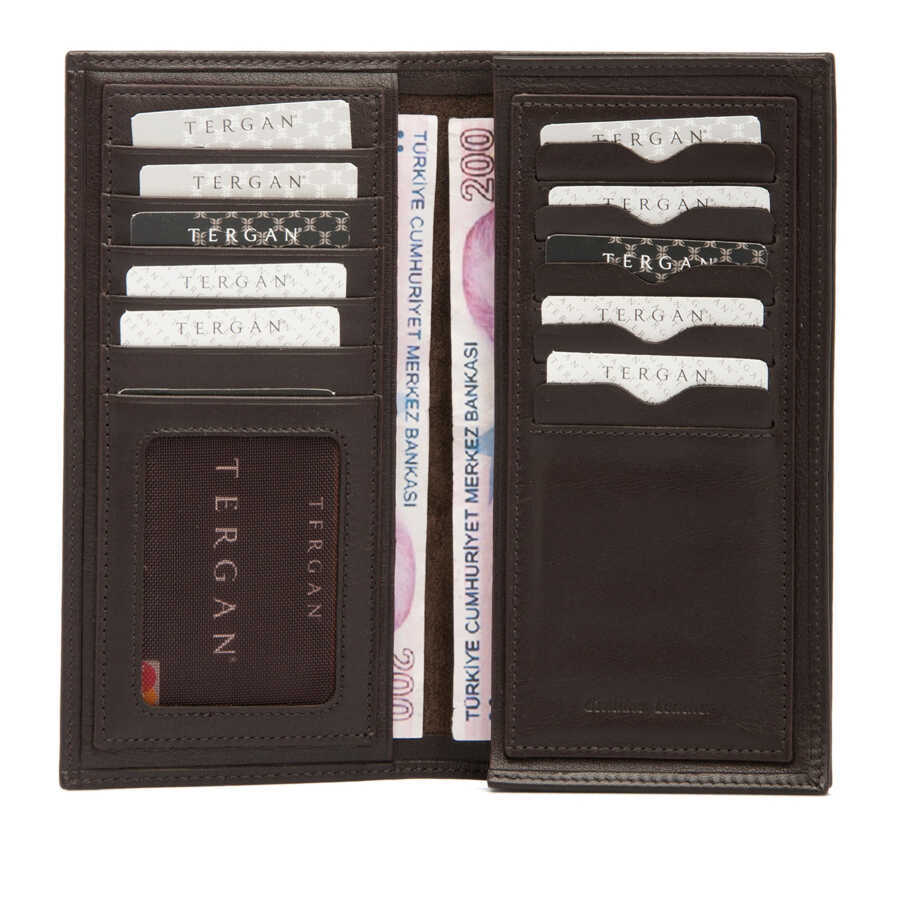 Gelince Haber VerTergan portföy deri cüzdan gerçek deriden üretilmiştir. Tergan portföy deri cüzdanın kapalı ölçüsü boy 18 cm en 9 cm derinlik 2 cm. Tergan deri cüzdanın 10 adet kart bölmesi vardır. İç kısmındaki bölme telefon koymak için uygundur.