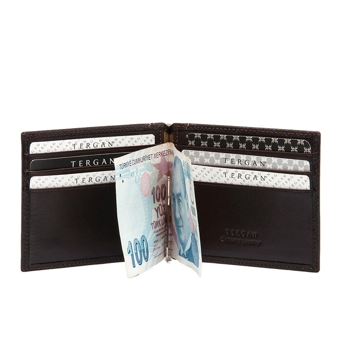 Gelince Haber VerTergan deri cüzdan gerçek deriden üretilmiştir. Tergan deri cüzdanın kapalı ölçüsü Yükseklik 8,5 cm Genişlik 10,5 cm Kalınlık 1 cm. Tergan deri cüzdanın altı adet kart bölmesi orta kısmında kelepçeli para koyma bölmesi vardır. Cüzdanın ön ve arka yüzünde saklama alanı vardır.