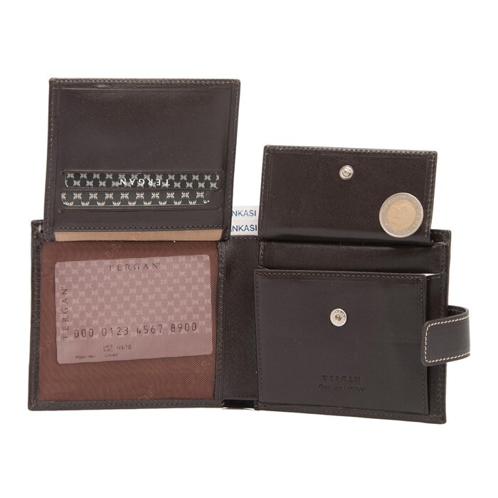 Gelince Haber VerTergan deri cüzdan gerçek deriden üretilmiştir. Tergan deri cüzdanın kapalı ölçüsü Yükseklik 10 cm Genişlik 11,5 cm Kalınlık 3 cm. Tergan deri cüzdanın altı adet kart bölmesi, iki adet para bölmesi ve kimlik bölmesi vardır. Para bölmelerinden birisi fermuarlıdır.