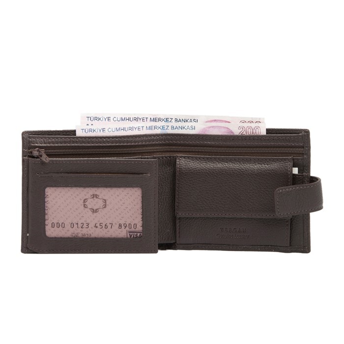 Tergan deri cüzdan gerçek deriden üretilmiştir. Tergan deri cüzdanın kapalı ölçüsü Yükseklik 9,5 cm Genişlik 11,5 cm kaınlık 2,5 cm. Tergan deri cüzdanın iki adet kart bölmesi, üç adet para bölmesi ve kimlik bölmesi vardır. Para bölmelerinden birisi fermuarlıdır.