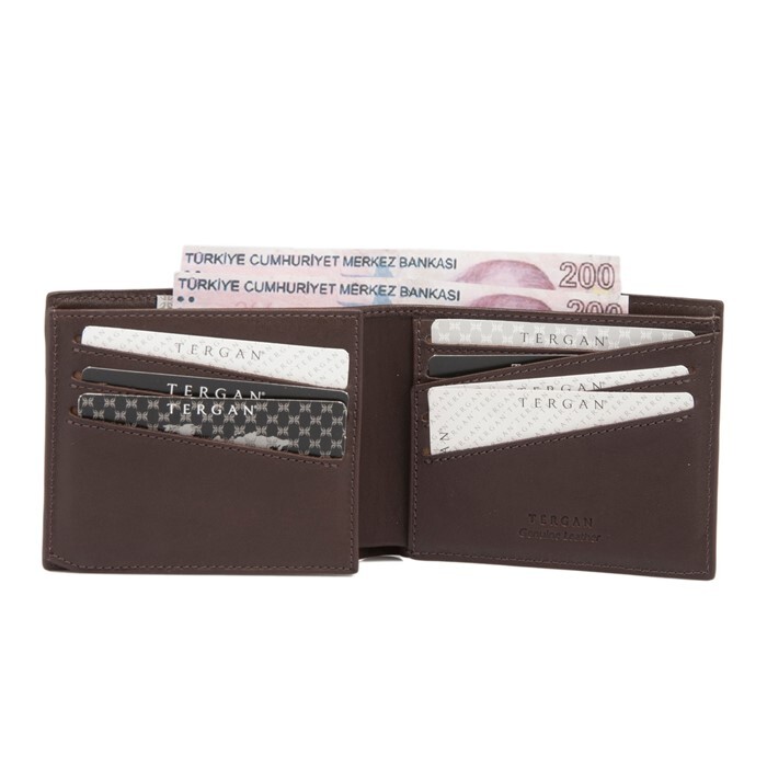 Gelince Haber VerTergan deri cüzdan gerçek deriden üretilmiştir. Tergan deri cüzdanın kapalı ölçüsü Yükseklik 10,5 cm Genişlik 9 cm Kalınlık 2 cm. Tergan deri cüzdanın onbir adet kart bölmesi, kimlik bölmesi ve iki adet para bölmesi vardır.