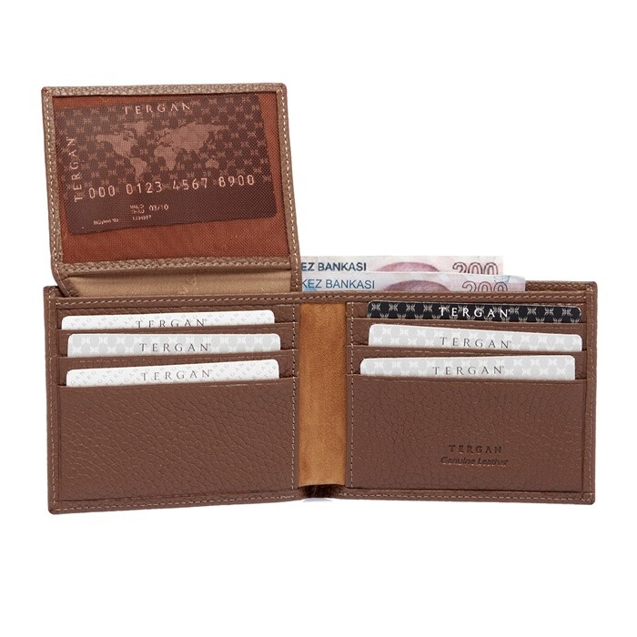 Tergan deri cüzdan gerçek deriden üretilmiştir. Tergan deri cüzdanın kapalı ölçüsü Yükseklik 9 cm Genişlik 11 cm Kalınlık 2 cm. Tergan deri cüzdanın dokuz adet kart bölmesi, iki adet para bölmesi ve kimlik bölmesi vardır.