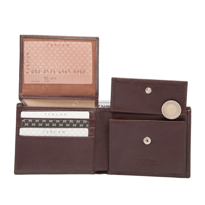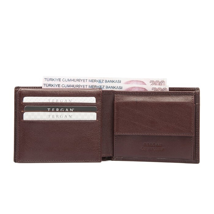 Tergan deri cüzdan gerçek deriden üretilmiştir. Tergan deri cüzdanın kapalı ölçüsü Yükseklik 8,5 cm Genişlik 11 cm Kalınlık 2 cm. Tergan deri cüzdanın altı adet kart bölmesi, iki adet para bölmesi vardır.