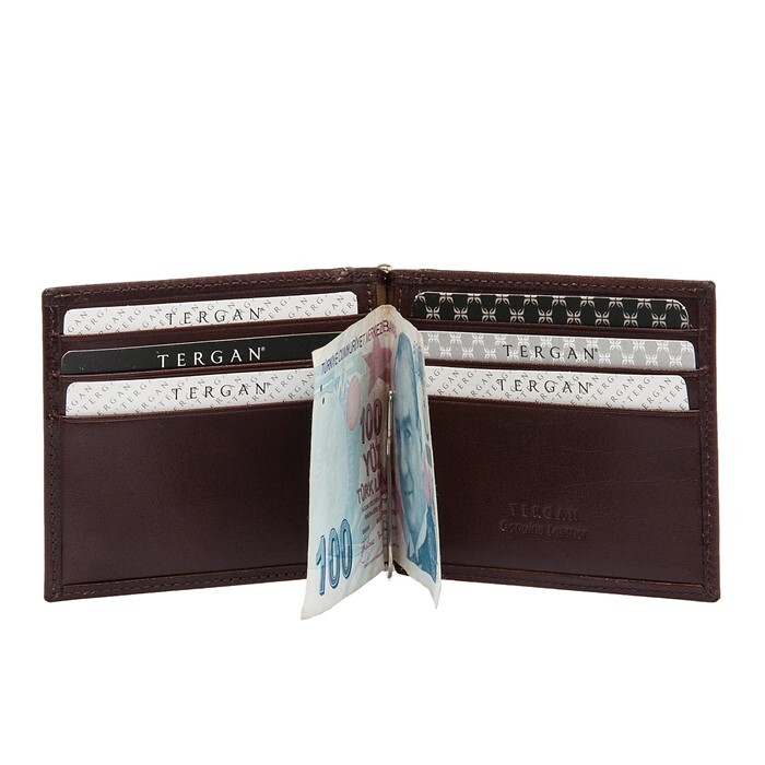 Gelince Haber VerTergan deri cüzdan gerçek deriden üretilmiştir. Tergan deri cüzdanın kapalı ölçüsü Yükseklik 8,5 cm Genişlik 10,5 cm Kalınlık 1 cm. Tergan deri cüzdanın altı adet kart bölmesi orta kısmında kelepçeli para koyma bölmesi vardır. Cüzdanın ön ve arka yüzünde saklama alanı vardır.