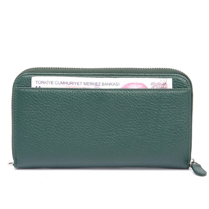 Gelince Haber VerKadın Deri Cüzdan gerçek deriden üretilmiştir. Kadın Cüzdanın kapalı ölçüsü Yükseklik 11 cm, Genişlik 19,5 cm, Kalınlık 3 cm. Tergan Kadın Cüzdan da sekiz adet kredi kart bölmesi, beş adet saklama alanı ve iç kısmında bir adet fermuarlı bölme vardır. Kadın cüzdanını el ile taşımak için sapı vardır.