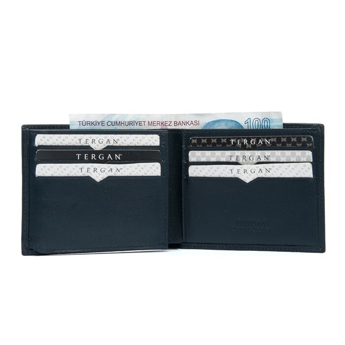 Gelince Haber VerTergan deri cüzdan gerçek deriden üretilmiştir. Tergan deri cüzdanın kapalı ölçüsü Yükseklik 8,5 cm Genişlik 10,5 cm Kalınlık 2 cm. Tergan deri cüzdanın altı adet kart bölmesi, kimlik bölmesi ve iki adet para bölmesi vardır.