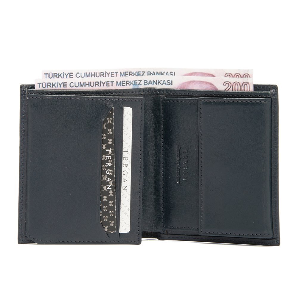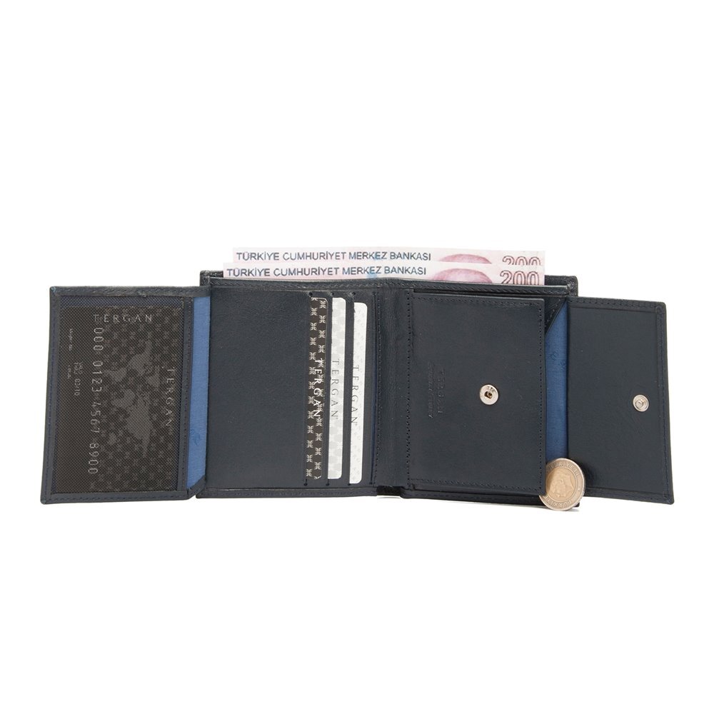 Gelince Haber VerTergan deri cüzdan gerçek deriden üretilmiştir. Tergan deri cüzdanın kapalı ölçüsü Yükseklik 10,6 cm Genişlik 9 cm Kalınlık 2,5 cm. Tergan deri cüzdanın beş adet kredi kart bölmesi, kimlik bölmesi ve bozuk para bölmesi vardır.