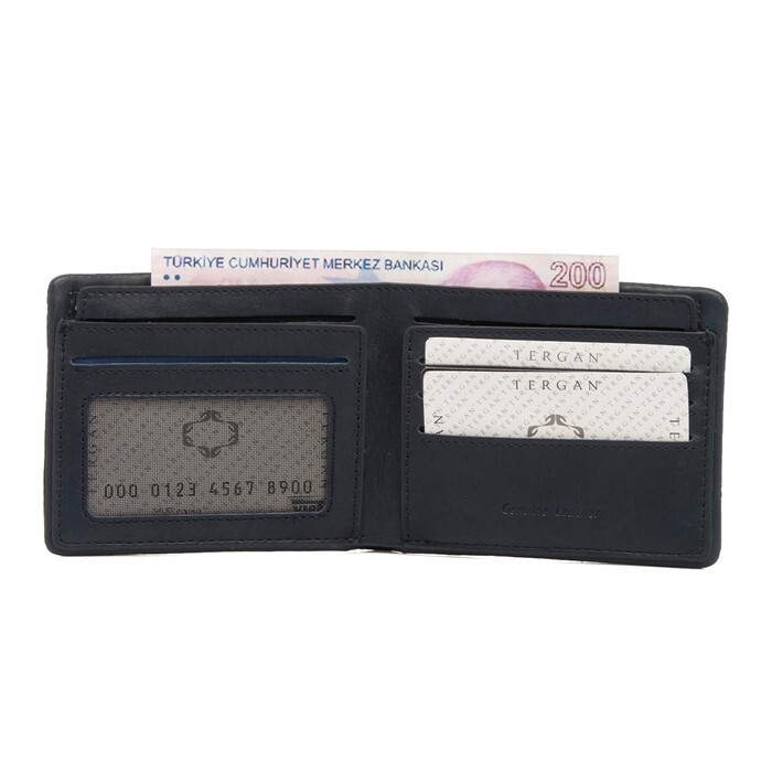 Gelince Haber VerTergan deri cüzdan gerçek deriden üretilmiştir. Tergan deri cüzdanın kapalı ölçüsü Yükseklik 9 cm Genişlik 11 cm Kalınlık 2 cm. Tergan deri cüzdanın dokuz adet kart bölmesi, iki adet para bölmesi ve kimlik bölmesi vardır.