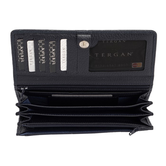 Gelince Haber VerKadın Deri Cüzdan gerçek deriden üretilmiştir. Kadın deri cüzdanın kapalı ölçüsü Yükseklik 10 cm Genişlik 19 cm Kalınlık 3 cm. Kadın deri cüzdanın yedi adet kredi kart bölmesi, beş adet saklama alanı, iç kısmıdna iki adet fermuarlı bölme ve arka kısmında fermuarlı bozuk para bölmesi vardır. Kadın Cüzdanın kapama şekli çıtçıtlıdır.