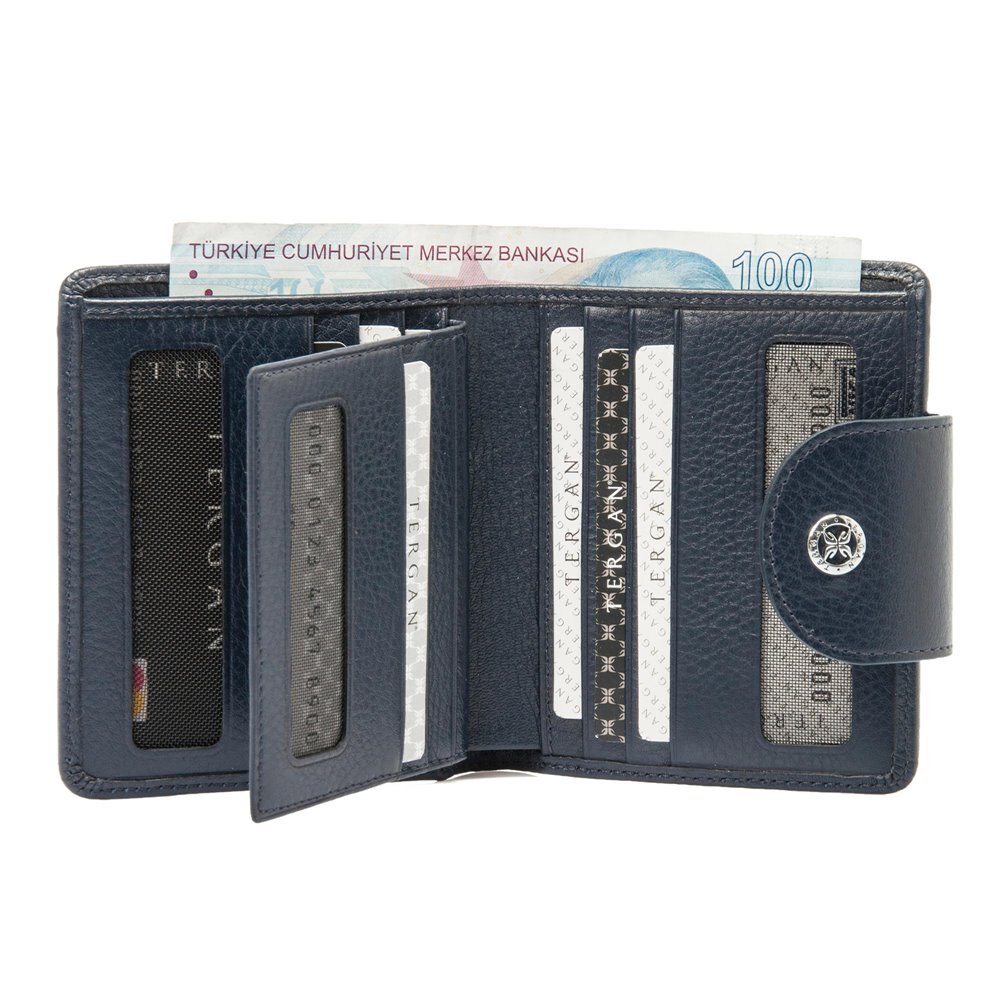Gelince Haber VerKadın deri cüzdan gerçek deriden üretilmiştir. Tergan Kadın Deri Cüzdanın kapalı ölçüsü yükseklik 11,5 cm genişlik 9,5 cm kalınlık 2 cm. Kadın Cüzdan da dokuz adet kredi kart bölmesi, üç adet saklama alanı, ehliyet ve kimlik bölmesi ve arka kısmında çıtçıtlı bozuk para bölmersi vardır. Kadın cüzdanın kapama şekli çıtçıtlıdır.