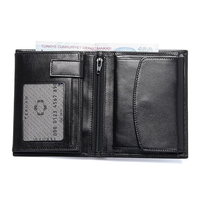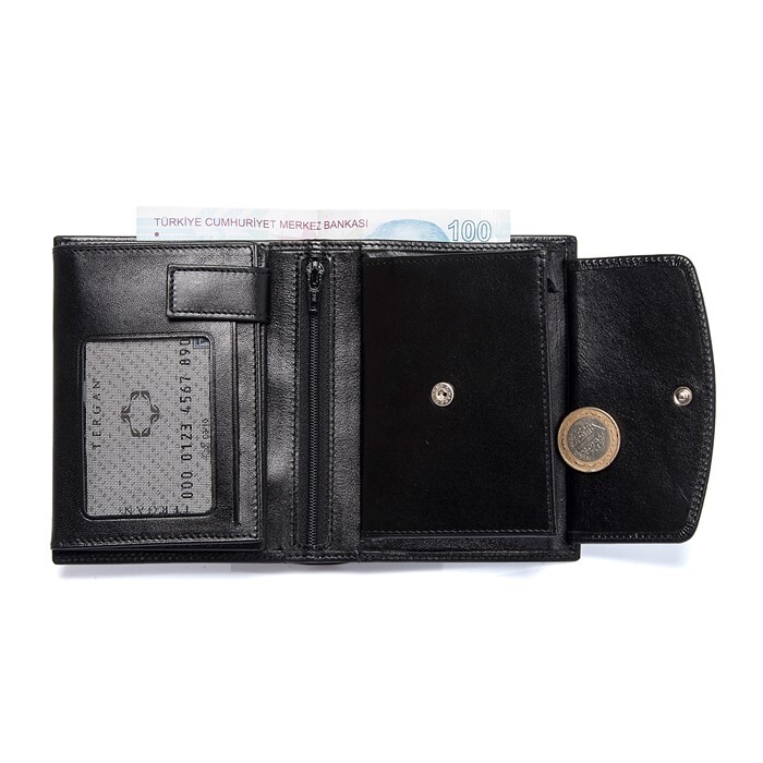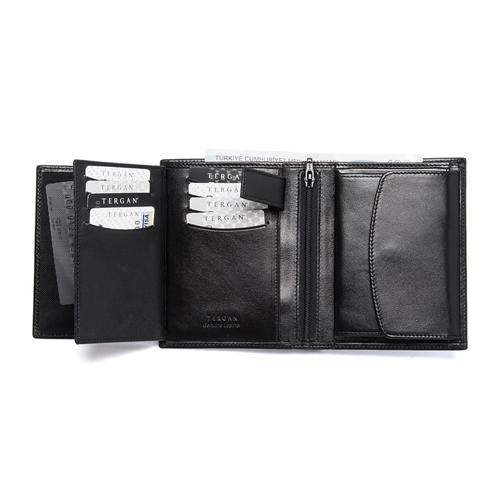 Gelince Haber VerTergan deri cüzdan gerçek deriden üretilmiştir. Tergan deri cüzdanın kapalı ölçüsü Yükseklik 12,5 cm Genişlik 10 cm Kalınlık 3 cm. Tergan deri cüzdanın sekiz adet kart bölmesi, iki adet para bölmesi vardır.