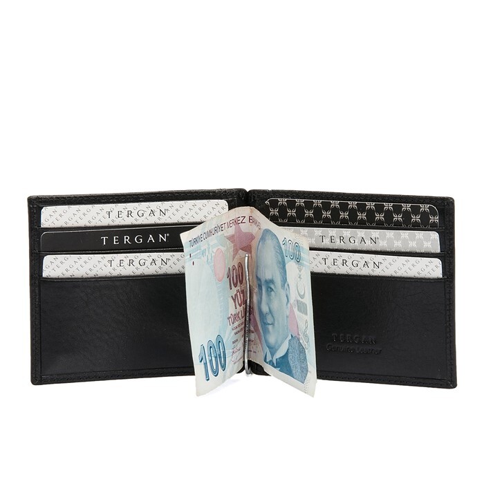 Gelince Haber VerTergan deri cüzdan gerçek deriden üretilmiştir. Tergan deri cüzdanın kapalı ölçüsü Yükseklik 8,5 cm Genişlik 10,5 cm Kalınlık 1 cm. Tergan deri cüzdanın altı adet kart bölmesi orta kısmında kelepçeli para koyma bölmesi vardır. Cüzdanın ön ve arka yüzünde saklama alanı vardır.