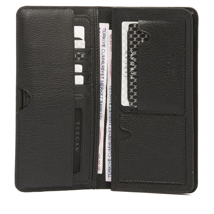 Tergan portföy deri cüzdan gerçek deriden üretilmiştir. Tergan deri cüzdanın kapalı ölçüsü Yükseklik 18,5 cm Genişlik 9,5 cm Kalınlık 3 cm. Tergan deri cüzdanın altı adet kart bölmesi, İç kısmın da telefon için bölmesi vardır. Portföy cüzdanın kartlık bölümü istenildiğin de çıkarılabilmektedir.