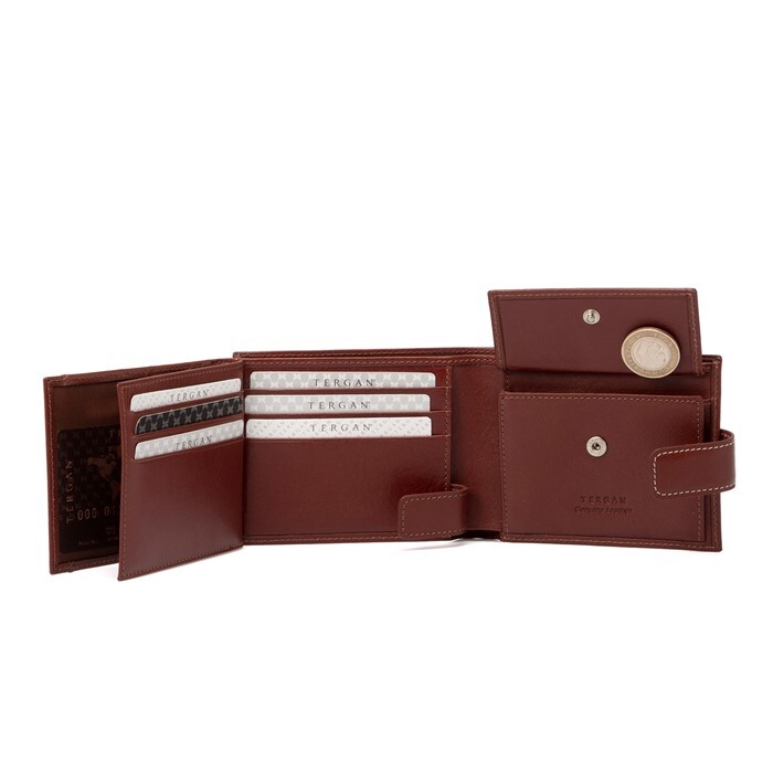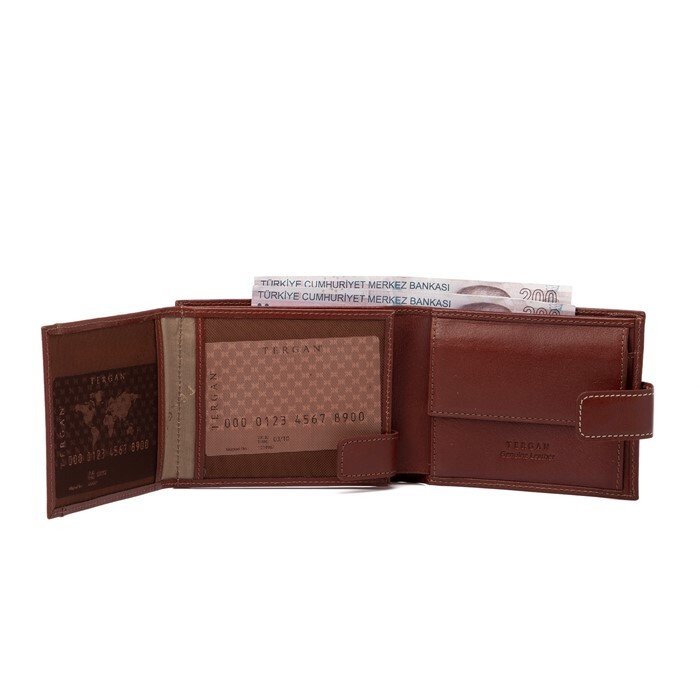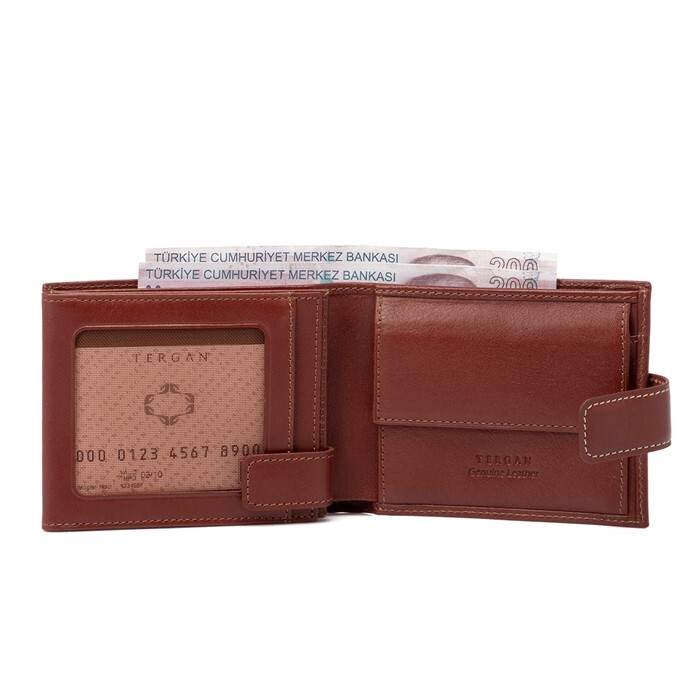 Tergan deri cüzdan gerçek deriden üretilmiştir. Tergan deri cüzdanın kapalı ölçüsü Yükseklik 9 cm Genişlik 11 cm kaınlık 2 cm. Tergan deri cüzdanın altı adet kart bölmesi, iki adet para bölmesi ve kimlik bölmesi vardır.